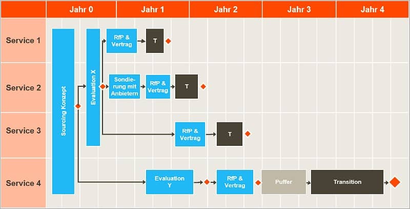 - Sourcing Roadmap bzw. Programm bestehend aus mehreren Projekten inkl. deren zeitliche Abfolge